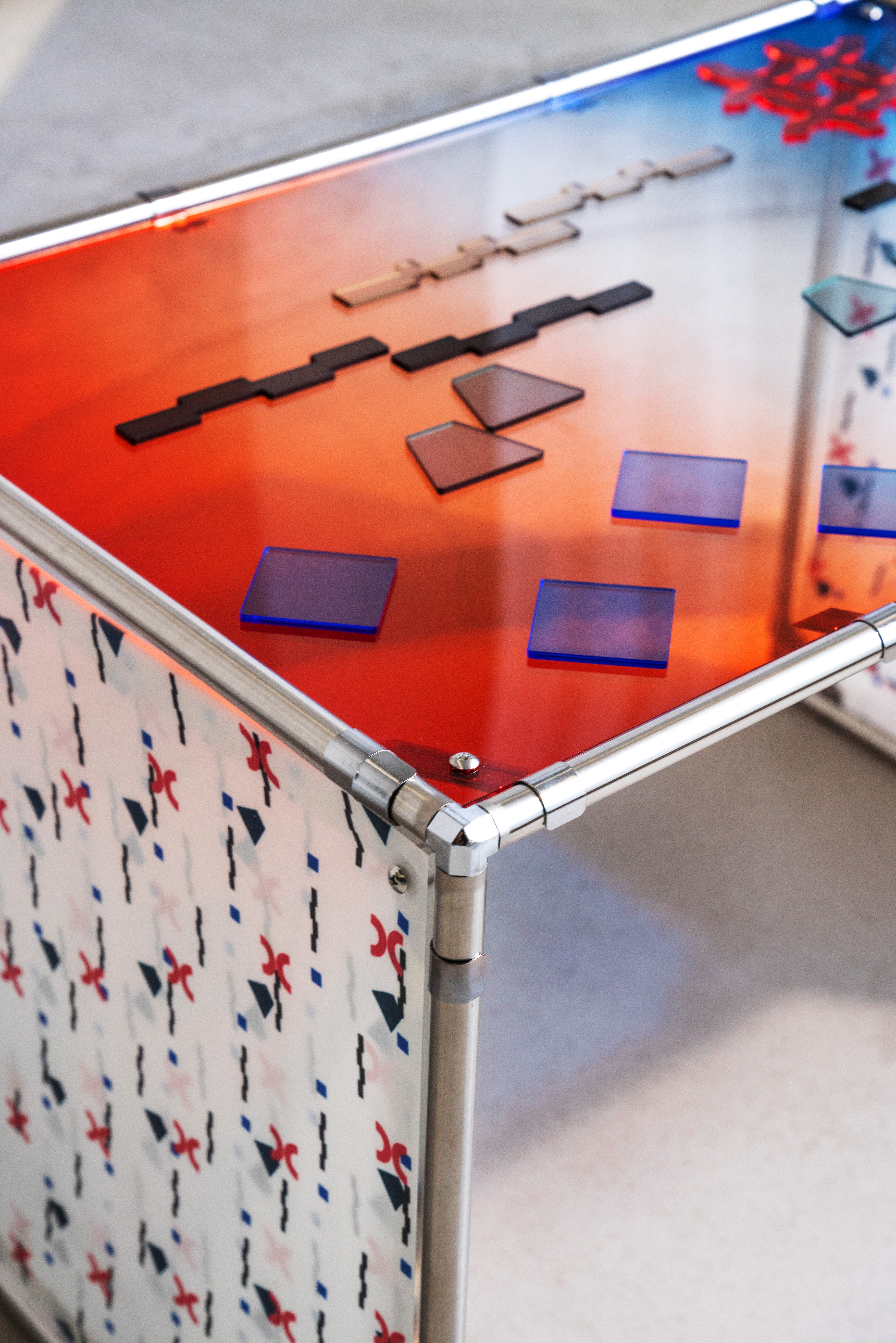 ESTJ’s PLAY TABLE은 ‘ESTJ‘ 성격유형을 가지고 있는 사람들을 위한 가구이다. 상판이 하나의 그림판이 되어 ESTJ를 구성하는 각각의 패턴 형태의 모듈을 사용하여 각자의 개성을 살린 다양한 이미지를 완성시킬 수 있다.