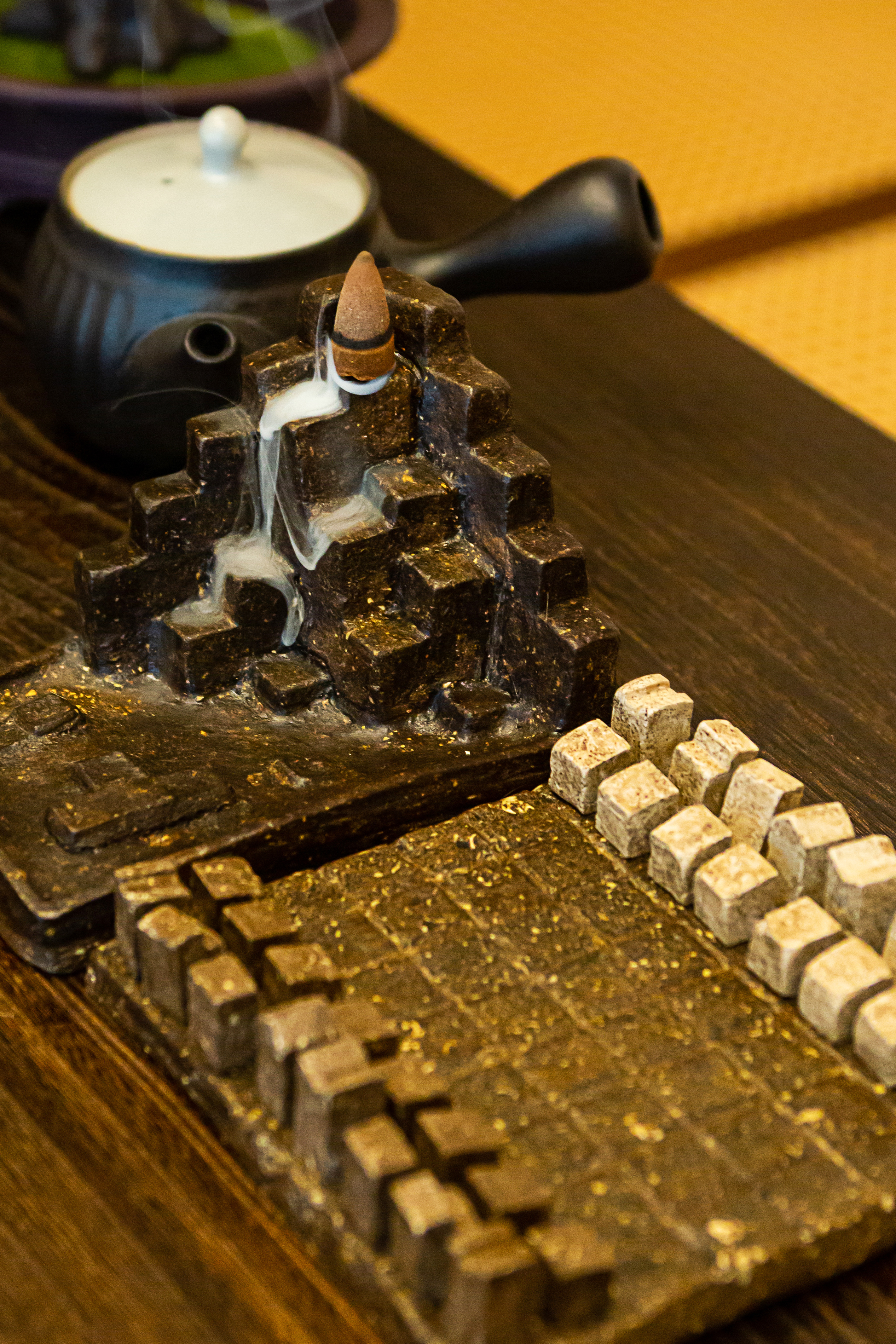 It is designed with a castle-shaped insense holder, and along with a chess set, Insense is a prop that combines oriental sensibility with Western sensibility, a combination of chess and sex. It is an insense holder using Backflow Con Insense, and Backflow is a prop that can be produced in various ways due to the image effect of smoke sinking to the floor when lit.