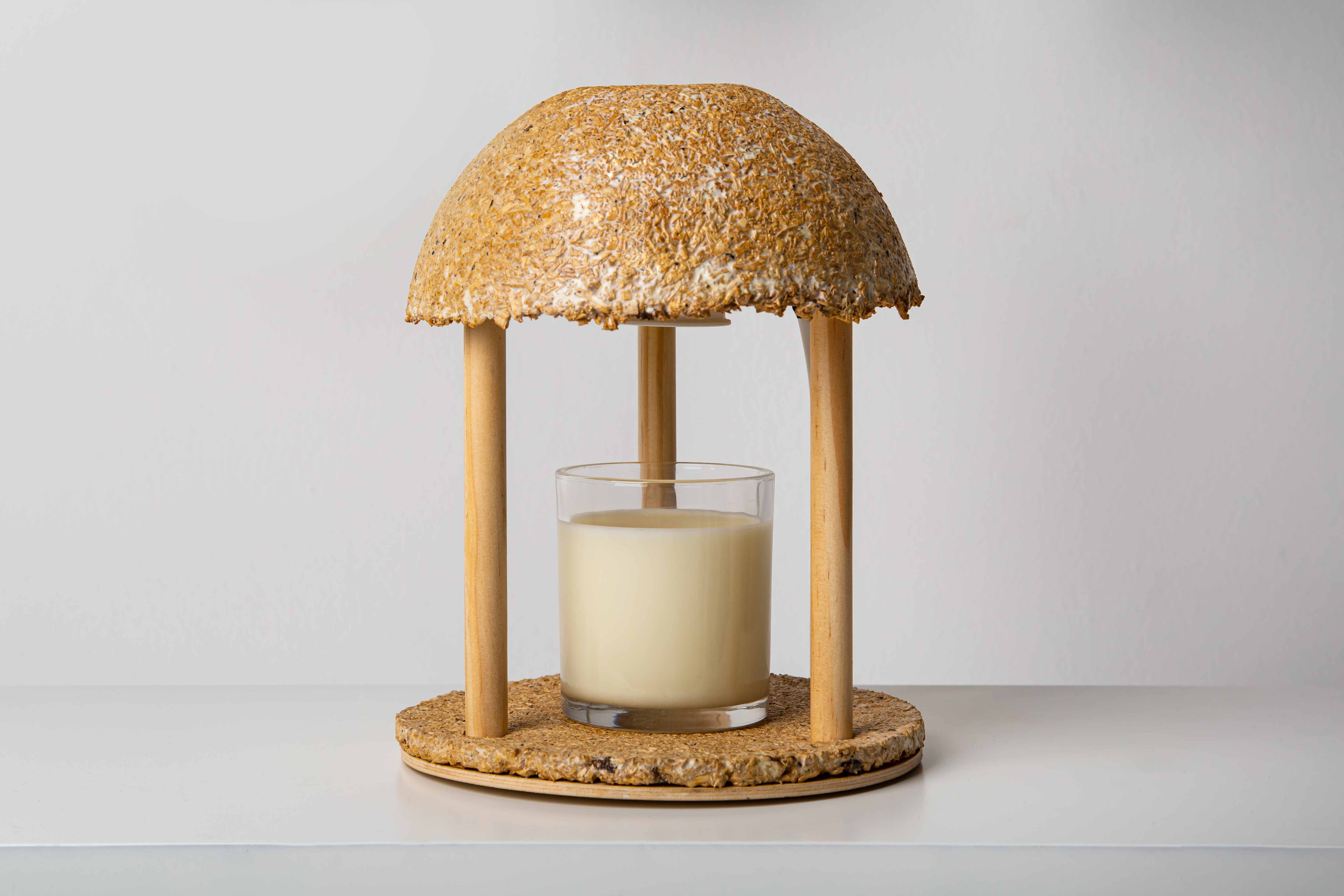 The ingredient used in this work is 'mushroom mycelium'. However, it was impossible to use mycelium as a 100% raw material.