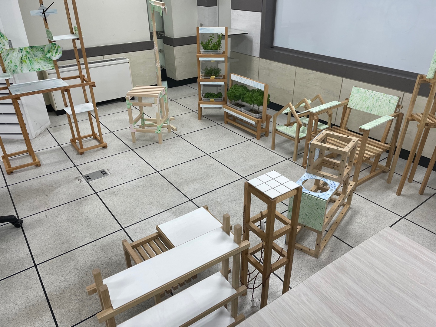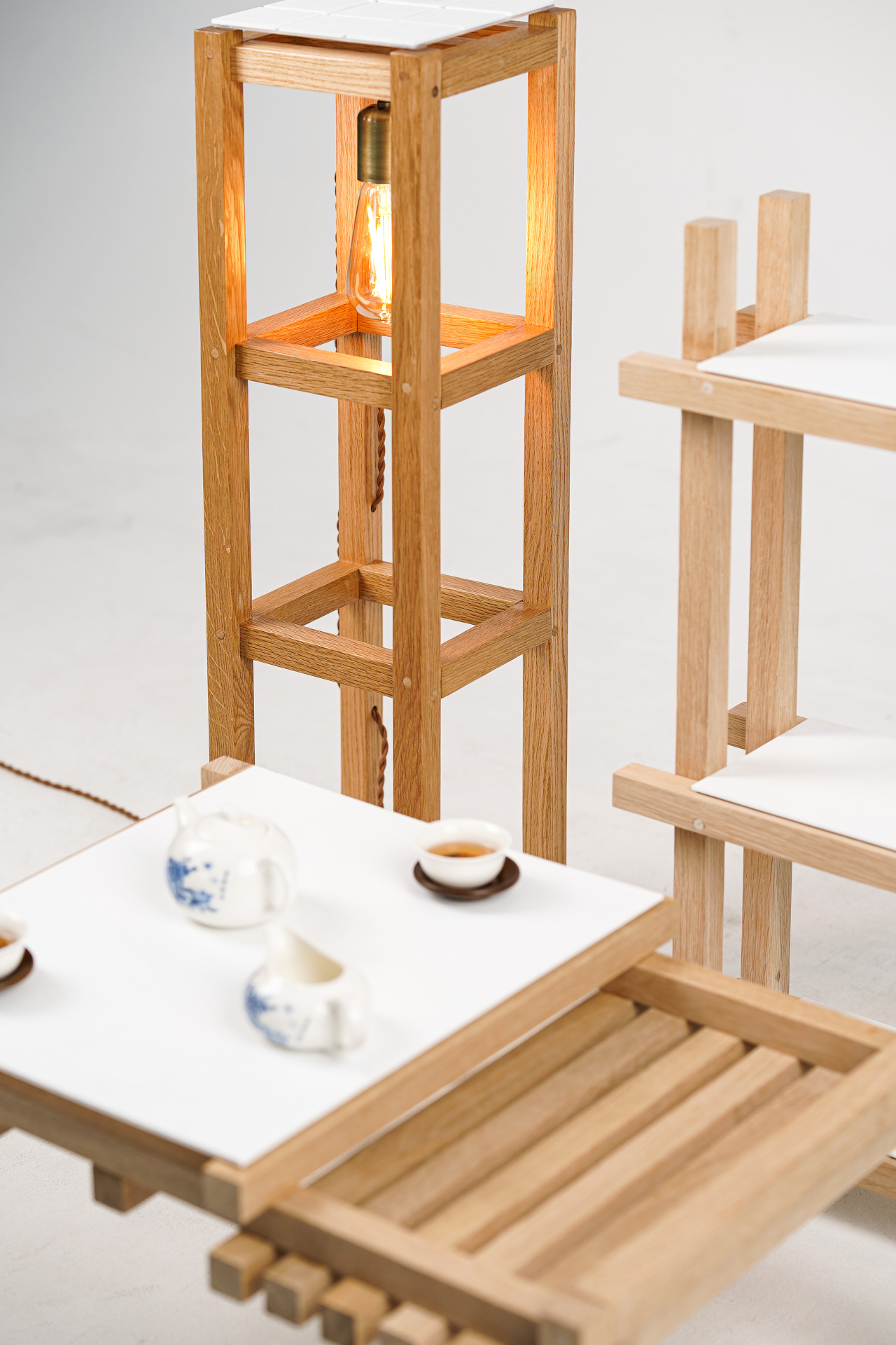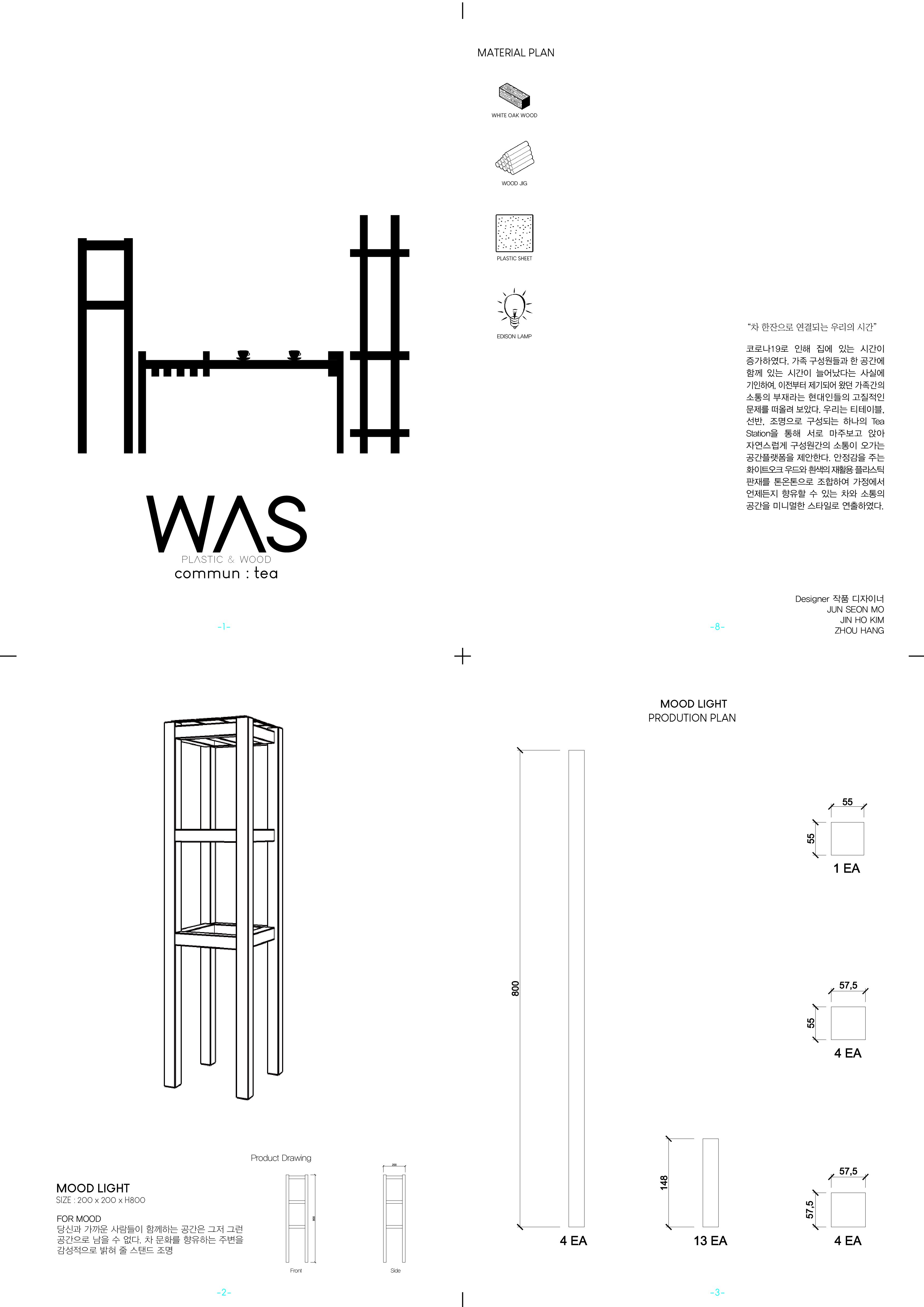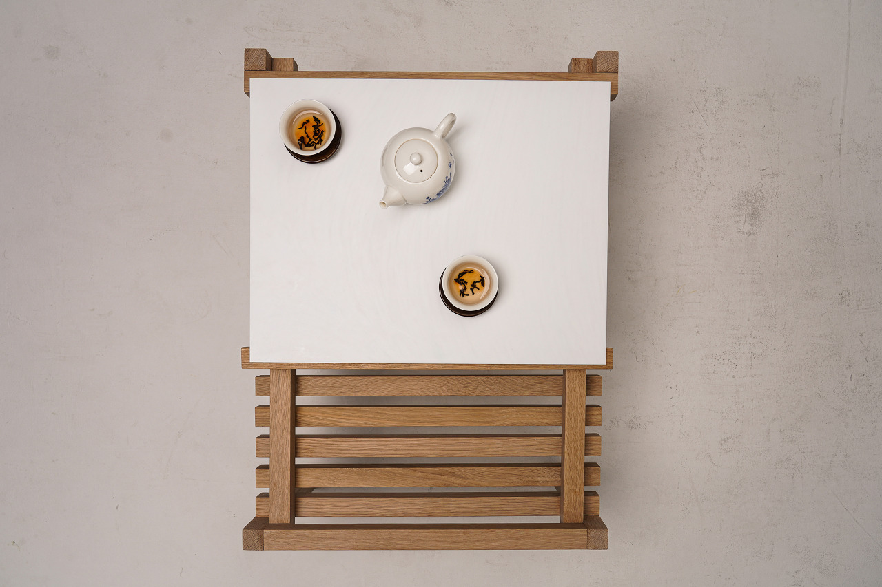 코로나-19로 인해 집에 있는 시간이 증가하였다. 가족 구성원들과 한 공간에 함께 있는 시간이 늘어났다는 사실에 기인하여, 이전부터 제기되어 왔던 가족간의 소통의 부재라는 현대인들의 고질적인 문제를 떠올려 보았다. 우리는 티테이블, 선반, 조명으로 구성되는 하나의 Tea Station을 통해 서로 마주보고 앉아 자연스럽게 구성원간의 소통이 오가는 공간플랫폼을 제안한다. 안정감을 주는 화이트 오크 우드와 흰색의 재활용 플라스틱판재를 톤온톤으로 조합하여 가정에서 언제든지 향유할 수 있는 차와 소통의공간을 미니멀한 스타일로 연출하였다.