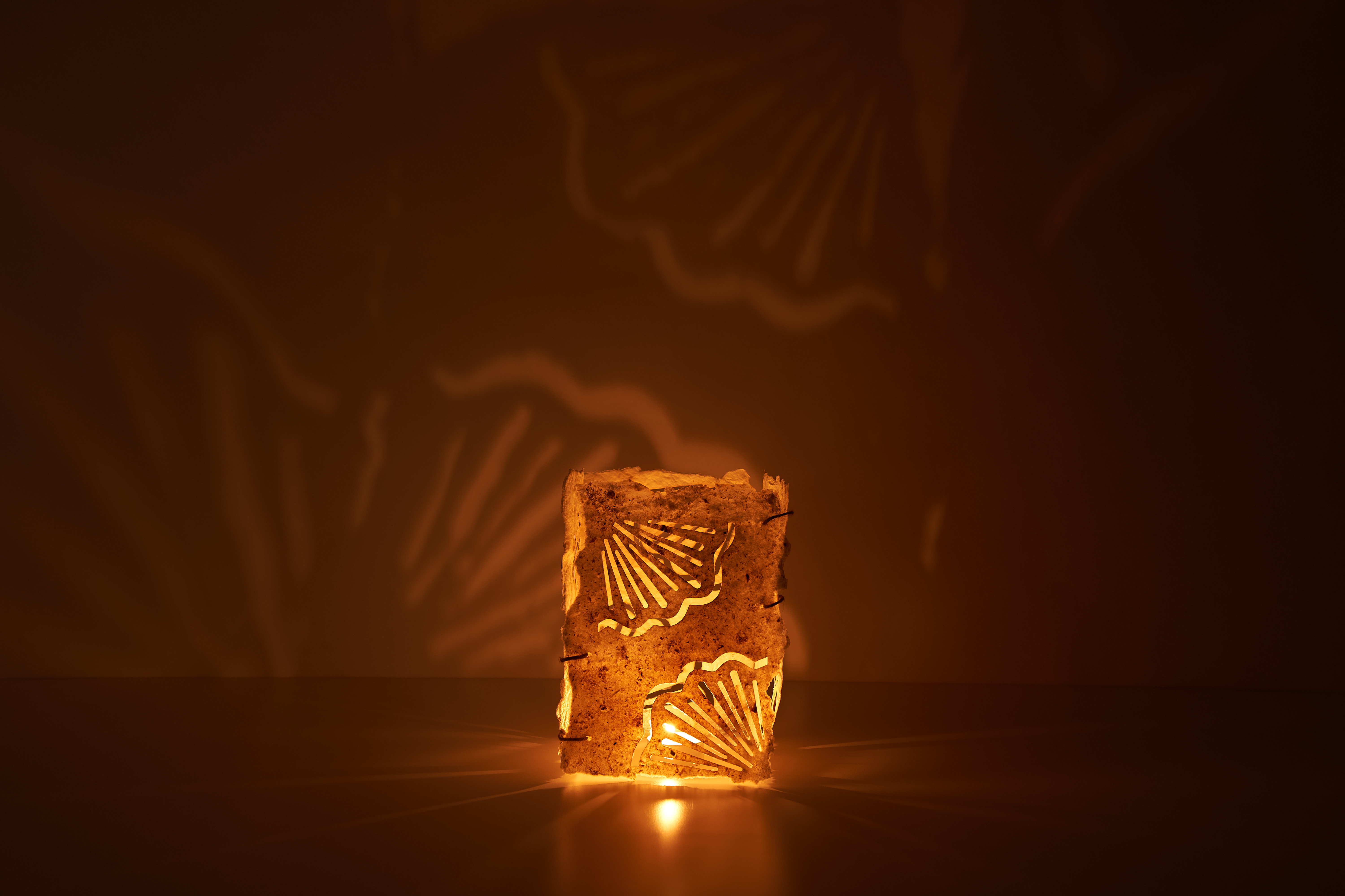 " We make an eco-friendly tray with the motif of relics and make a candlestick with paper made from mushrooms grown directly. "