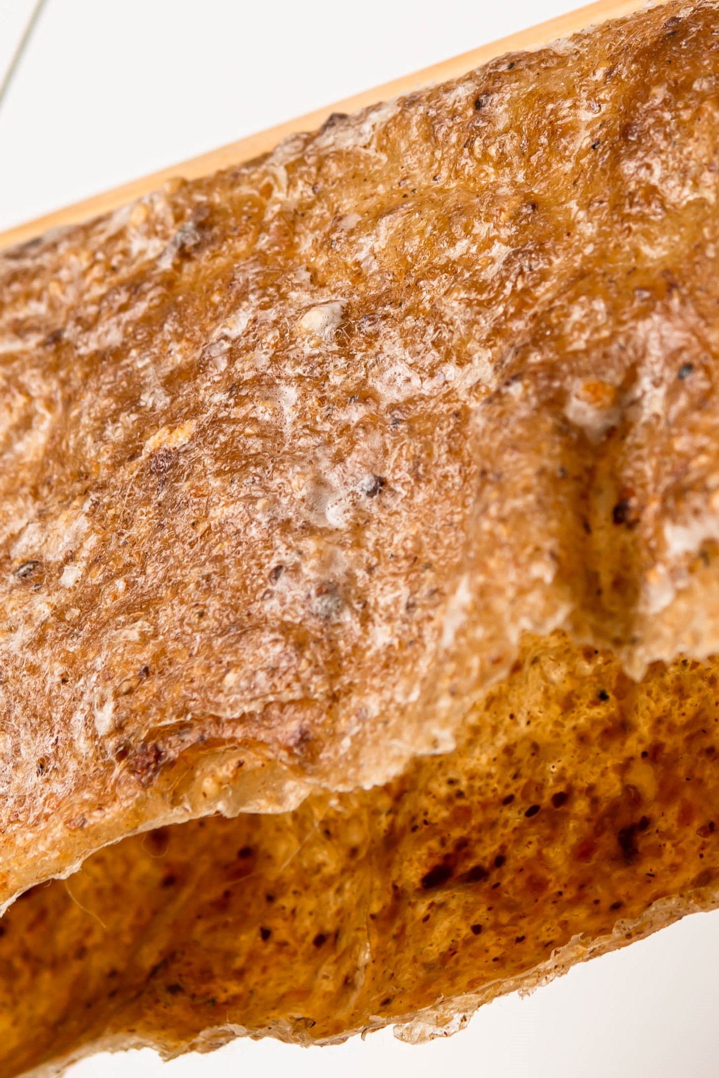 Orange peel bioplastic, which has a leathery texture, is tough but weak, and has the property of changing color over time.