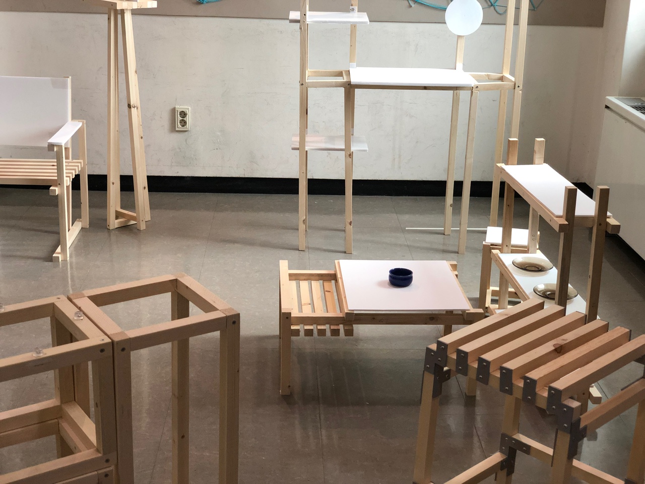 코로나-19로 인해 집에 있는 시간이 증가하였다. 가족 구성원들과 한 공간에 함께 있는 시간이 늘어났다는 사실에 기인하여, 이전부터 제기되어 왔던 가족간의 소통의 부재라는 현대인들의 고질적인 문제를 떠올려 보았다. 우리는 티테이블, 선반, 조명으로 구성되는 하나의 Tea Station을 통해 서로 마주보고 앉아 자연스럽게 구성원간의 소통이 오가는 공간플랫폼을 제안한다. 안정감을 주는 화이트 오크 우드와 흰색의 재활용 플라스틱판재를 톤온톤으로 조합하여 가정에서 언제든지 향유할 수 있는 차와 소통의공간을 미니멀한 스타일로 연출하였다.