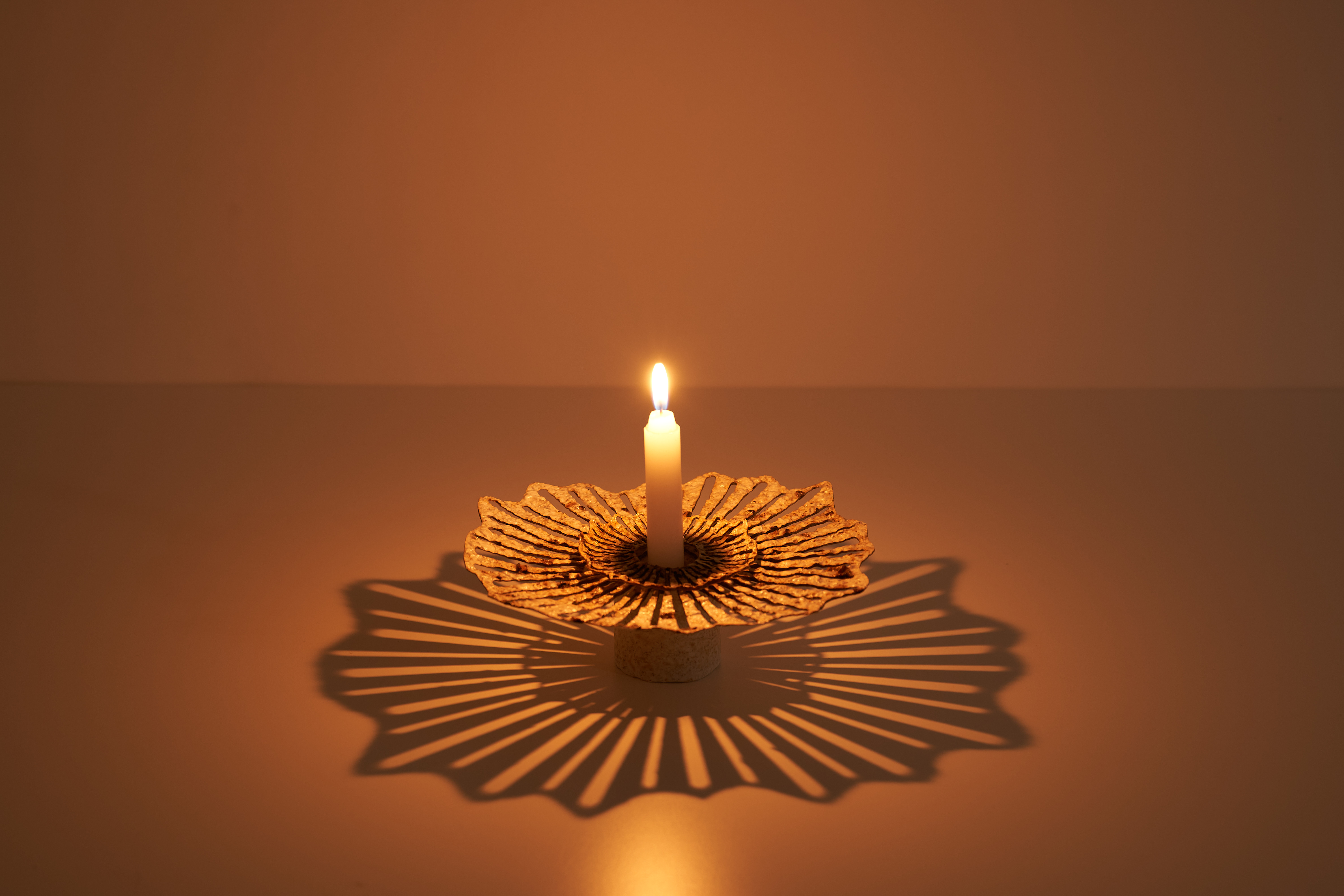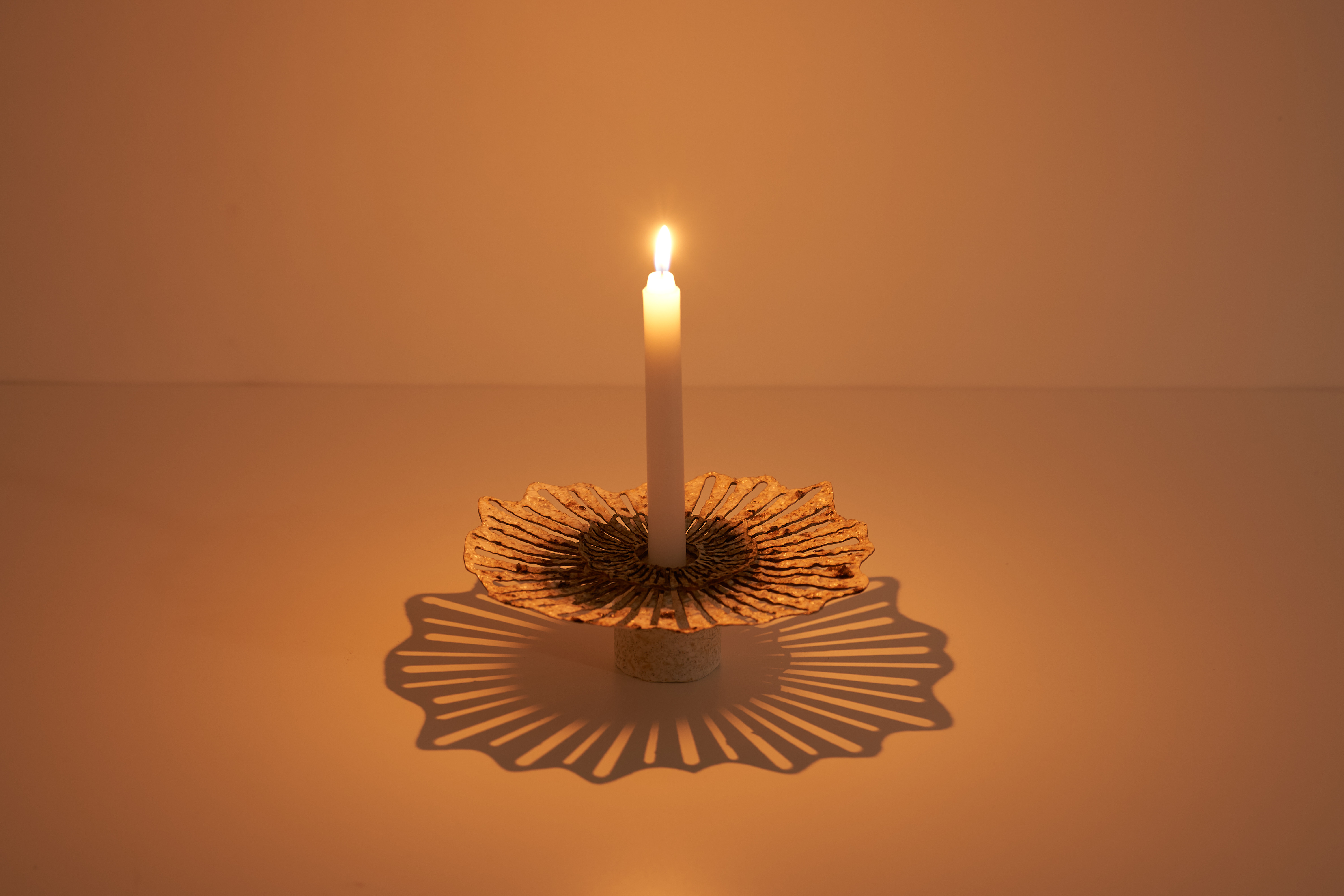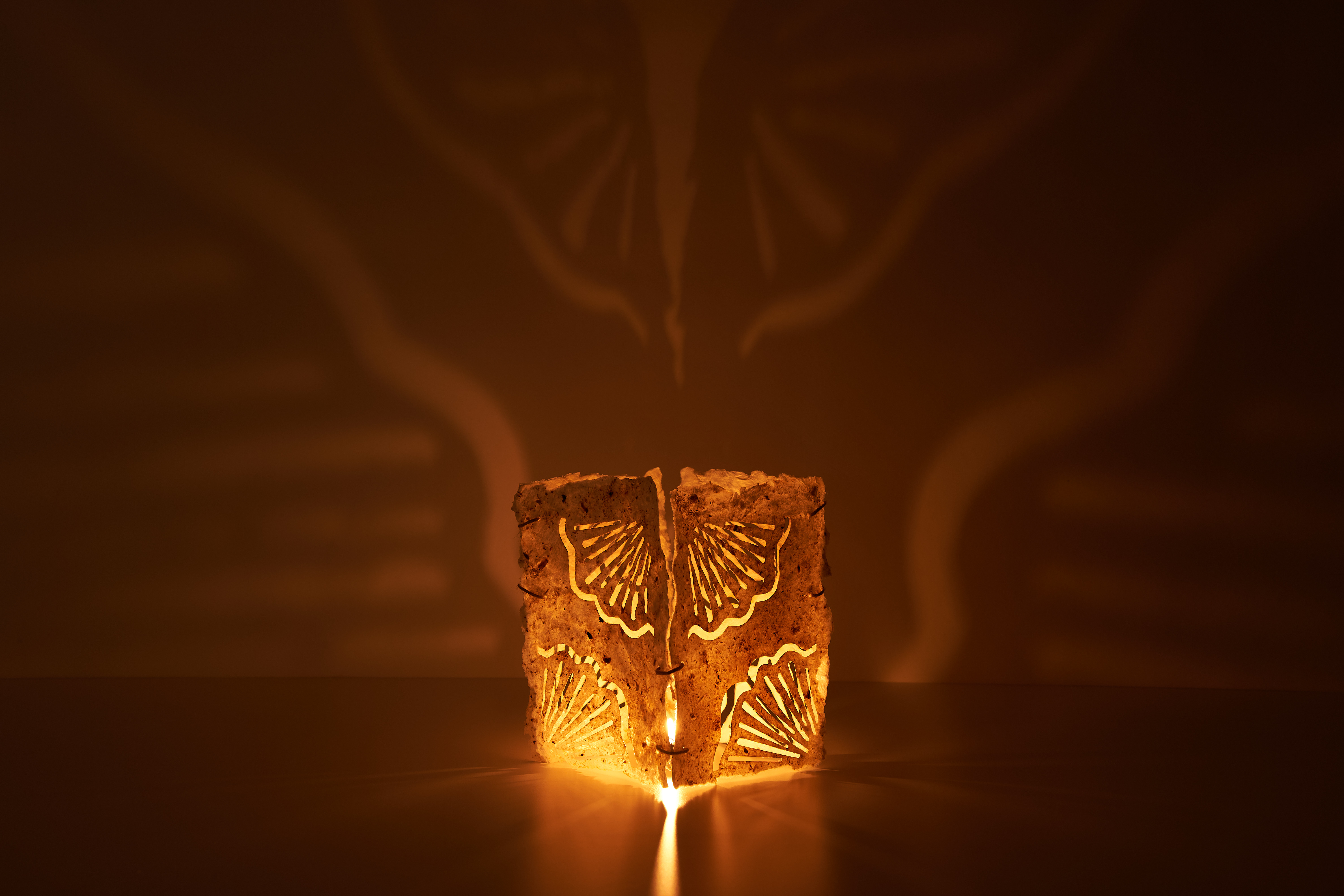 " We make an eco-friendly tray with the motif of relics and make a candlestick with paper made from mushrooms grown directly. "