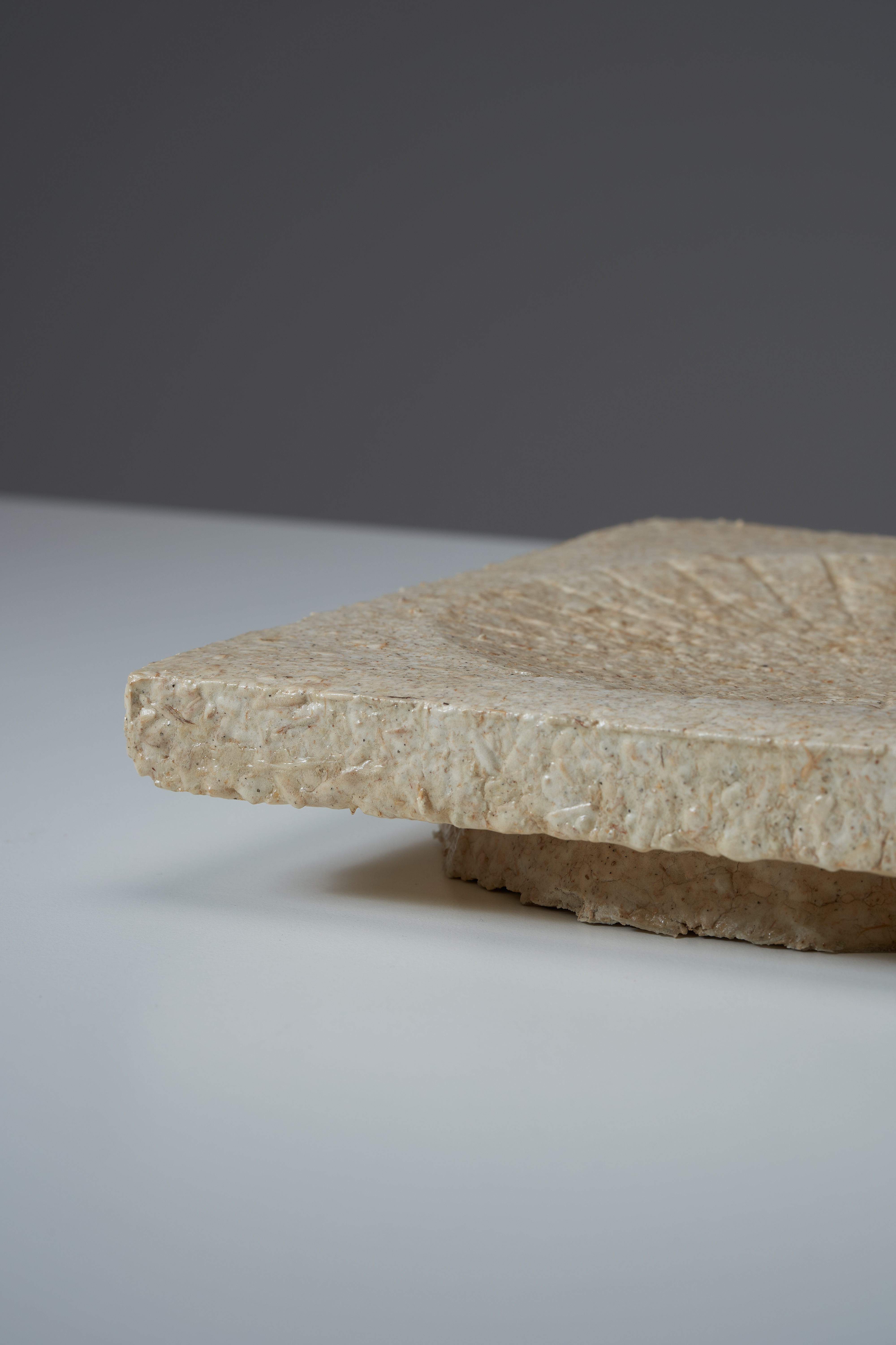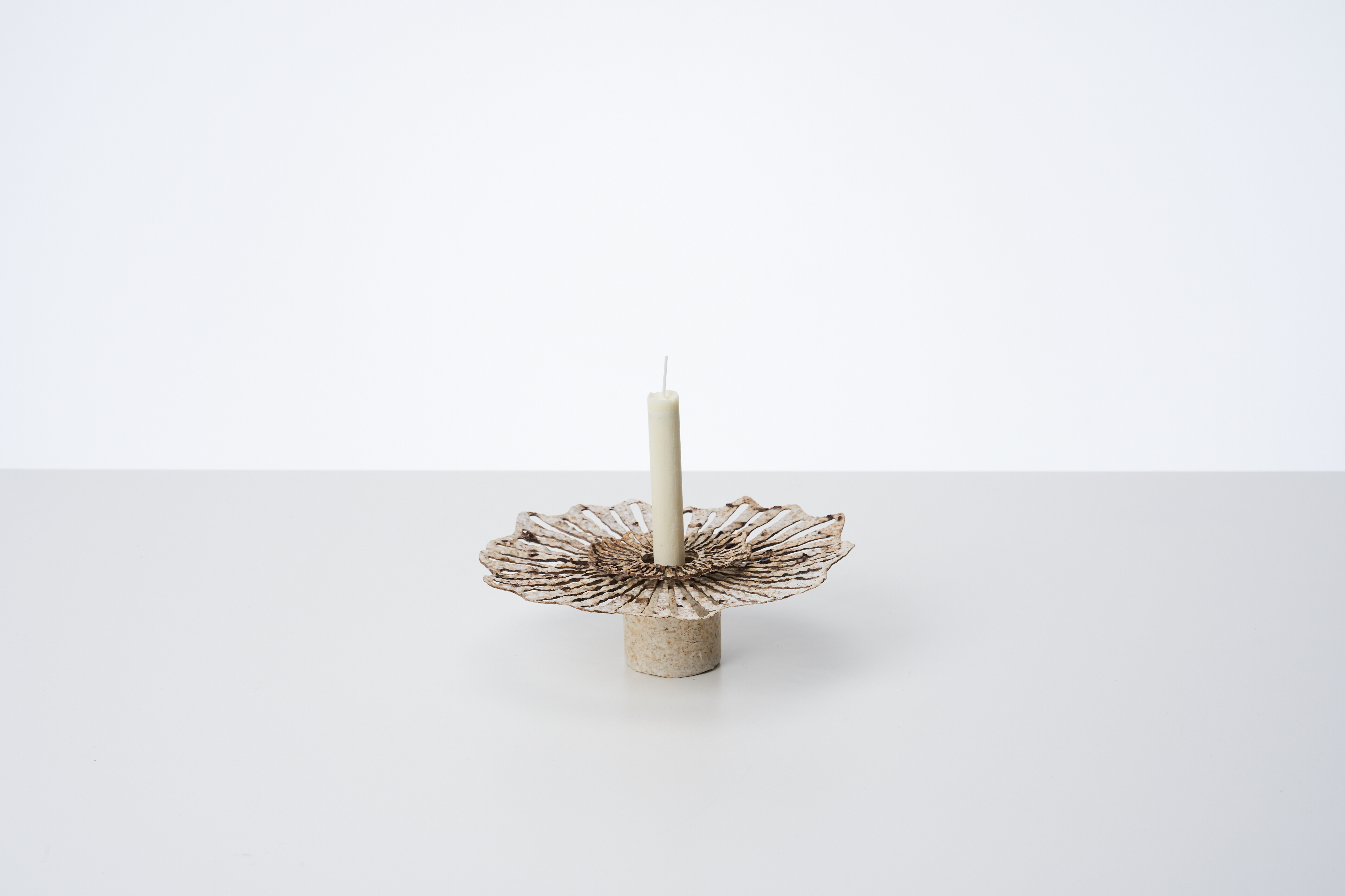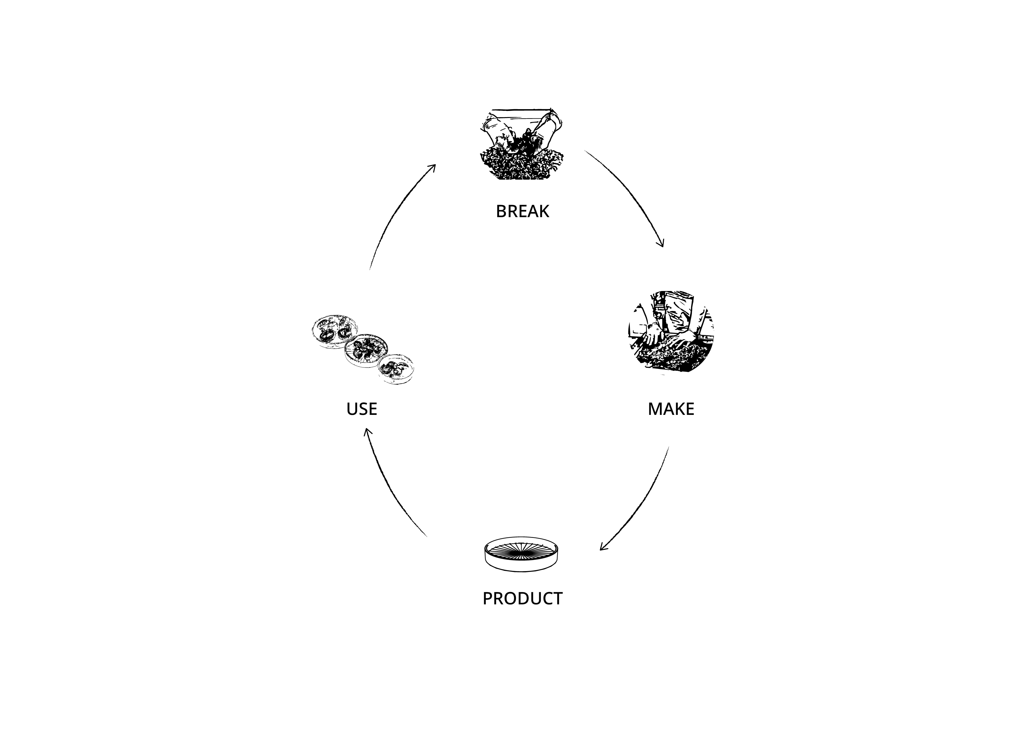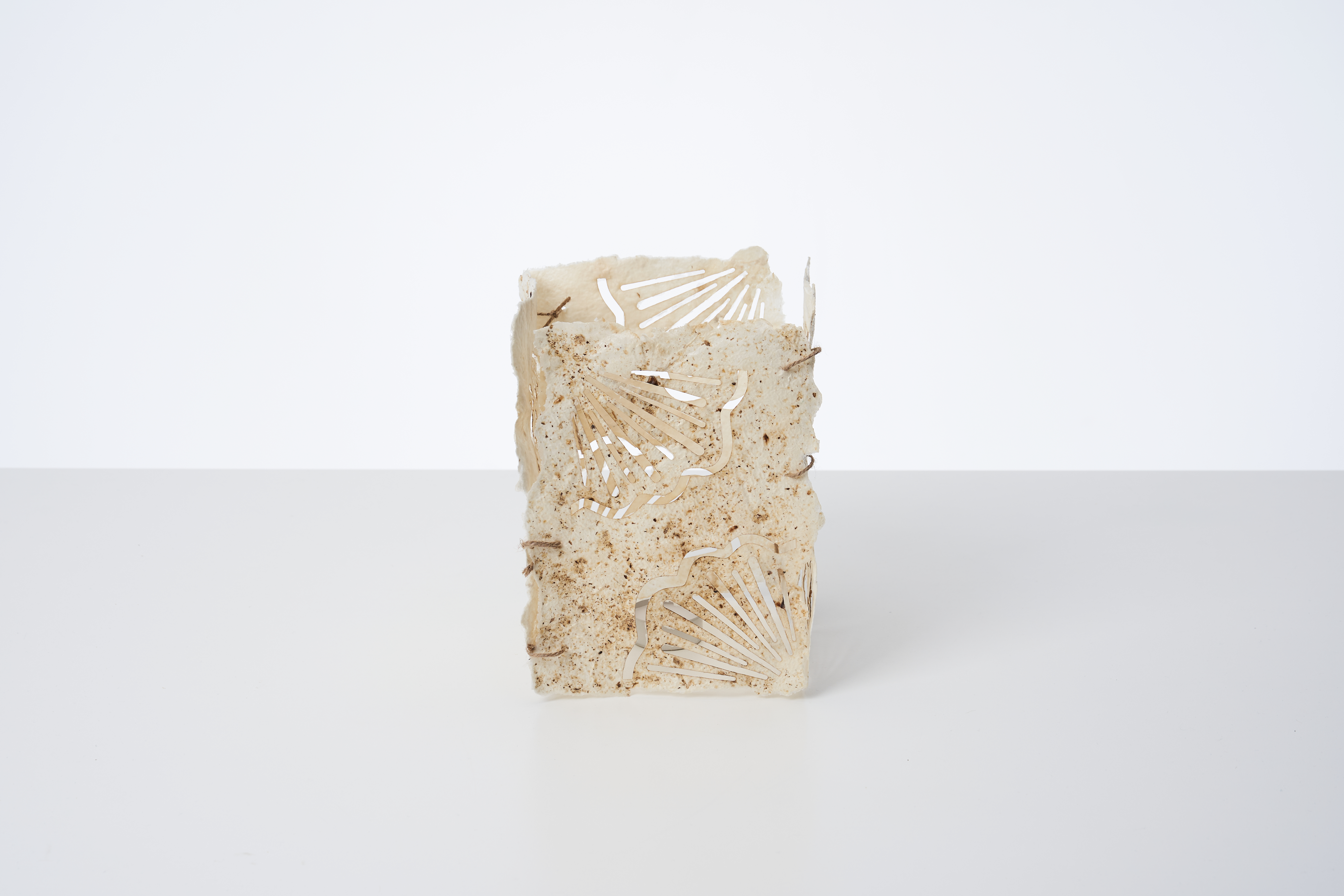 " We make an eco-friendly tray with the motif of relics and make a candlestick with paper made from mushrooms grown directly. "