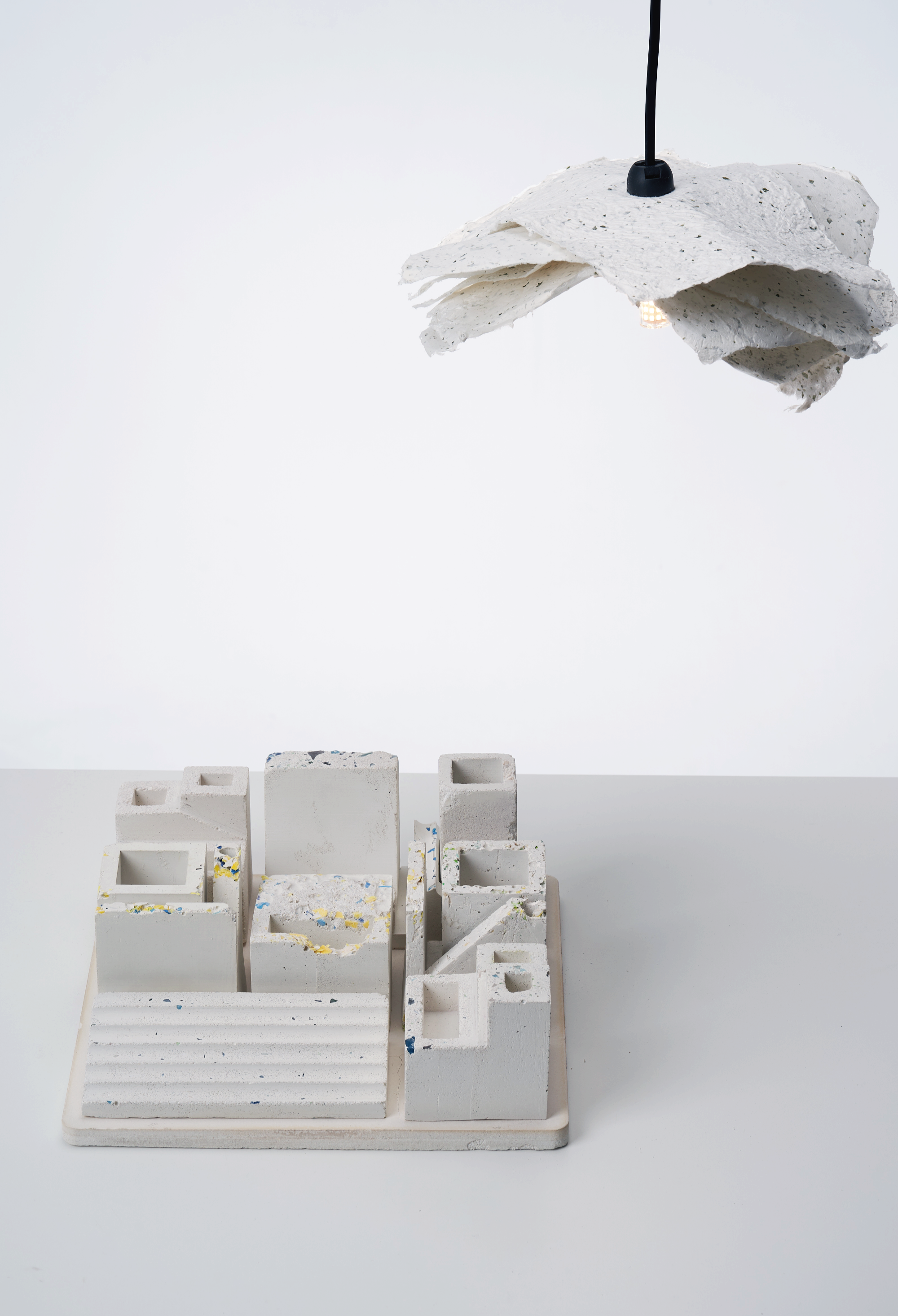 Trash is thrown away, but I hope that it will be reinterpreted and used in our daily life with desks and lighting.