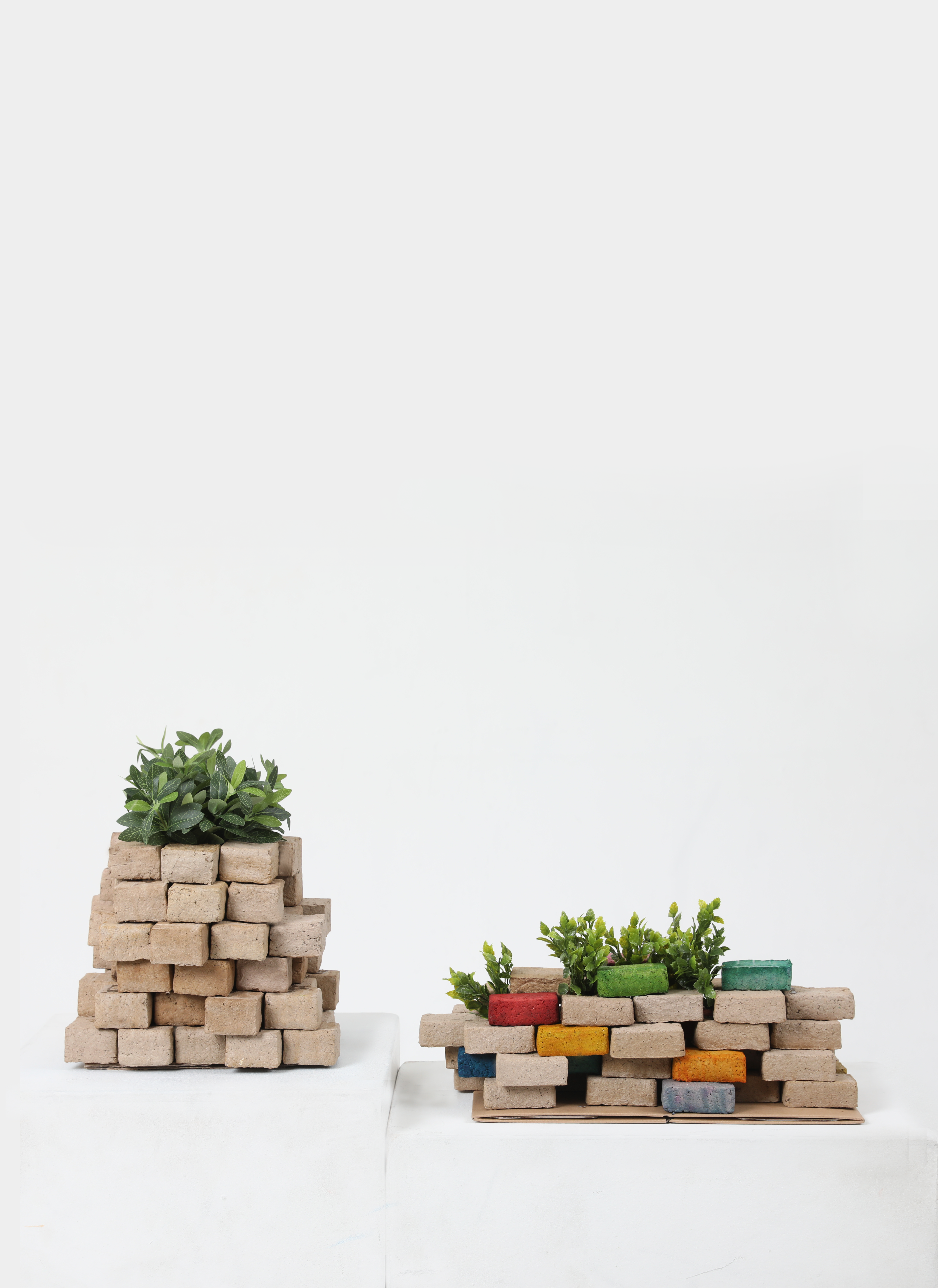 brick, and then the bricks were stacked to create a production with plants. The work was planned to give people mental healing. Plants and paper bricks were stacked freely to give fun to indoor life.