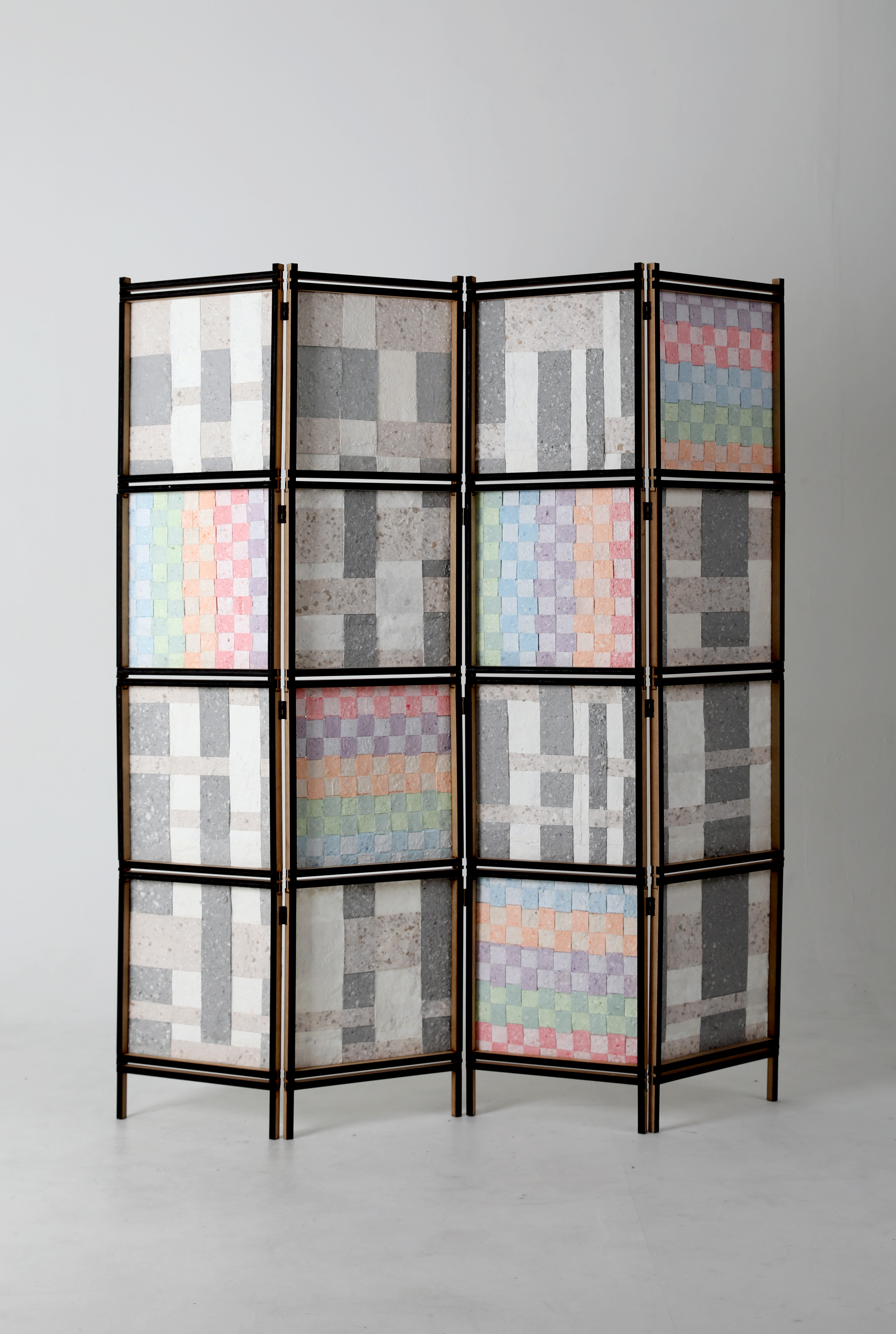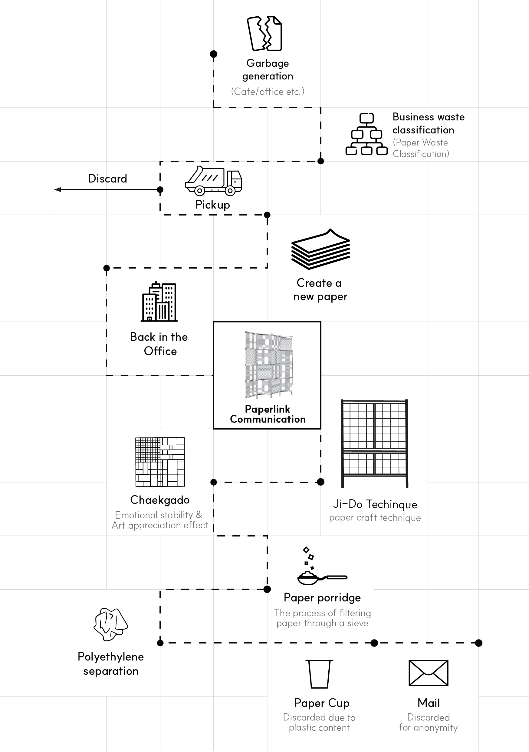 Paper cups and mail are mainly waste paper that occurs a lot in the office. As it occurs a lot in the office, we tried to select products that can be used in the office. Partitions were selected by reflecting the keywords 'cleanliness, lightness' in paper cups and the keywords 'anonymity, information protection' in the mail, and because traditional techniques were borrowed, a folding screen-type partition was produced with a motif from 'byeongpung'.
